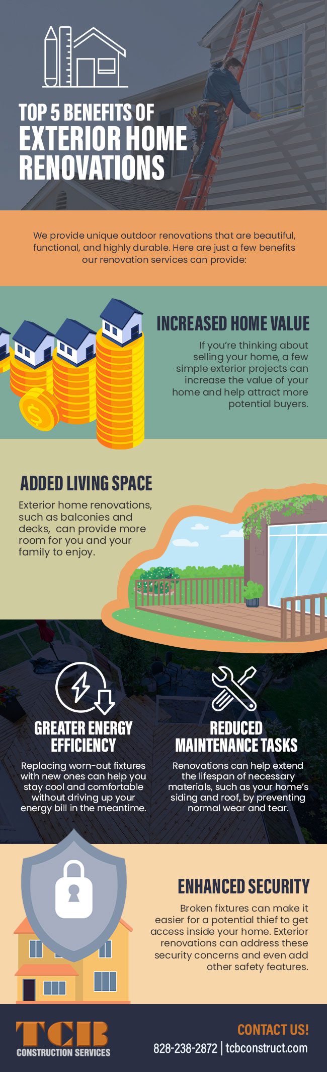 When you pull up to your home, it’s hard to want to go inside if the exterior is decrepit, outdated, or falling apart. Exterior renovations enhance your curb appeal and make your home look more inviting. And if you have plans to sell in the near future, renovating your exterior can help you attract potential buyers.